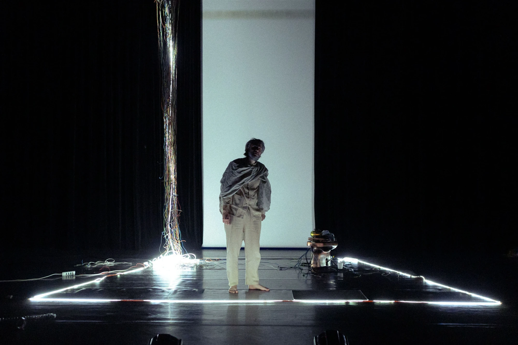Bestiario Umano ist eine Performance, die den Menschen als ein zu untersuchendes Wesen betrachtet. Auf der Bühne nehmen Instinkte, Rollen und Widersprüche unseres Alltags zwischen Worten, Körpern und Bildern Gestalt an. Das Ergebnis ist eine ironische und luzide theaterbasierte Untersuchung, die die Bühne eher als Ort der Beobachtung denn als Ort der Antworten nutzt.
